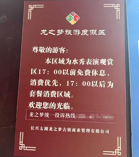 说着他还展示了一个牌子,上面确实写明了这里是观赏区,下午5点之前免费休息,5点之后为套餐消费区。
