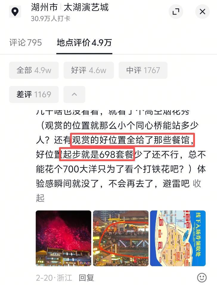 他们的目的地是湖州的太湖演艺城,到了晚上有打铁花和烟花秀,于是他们吃完晚饭才过来。